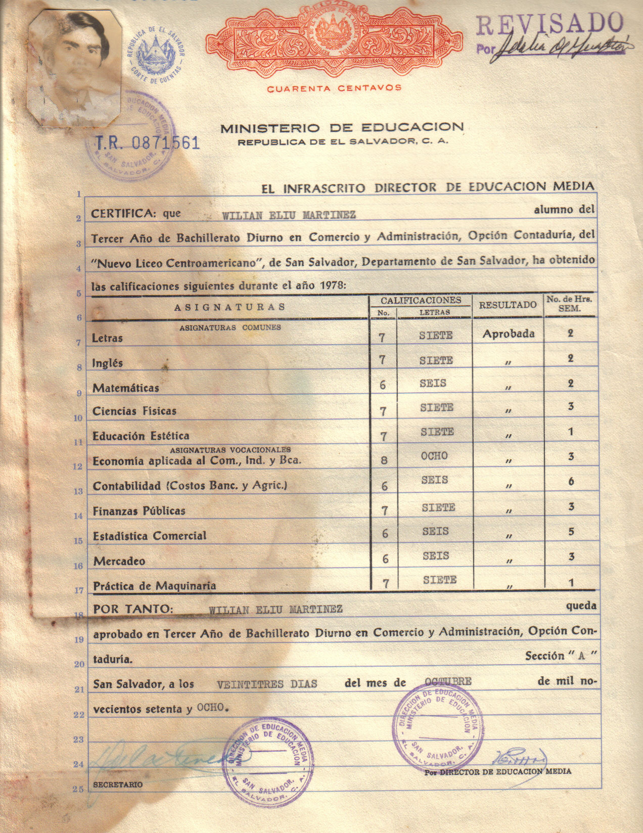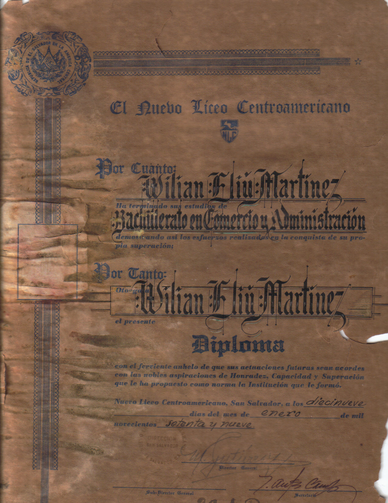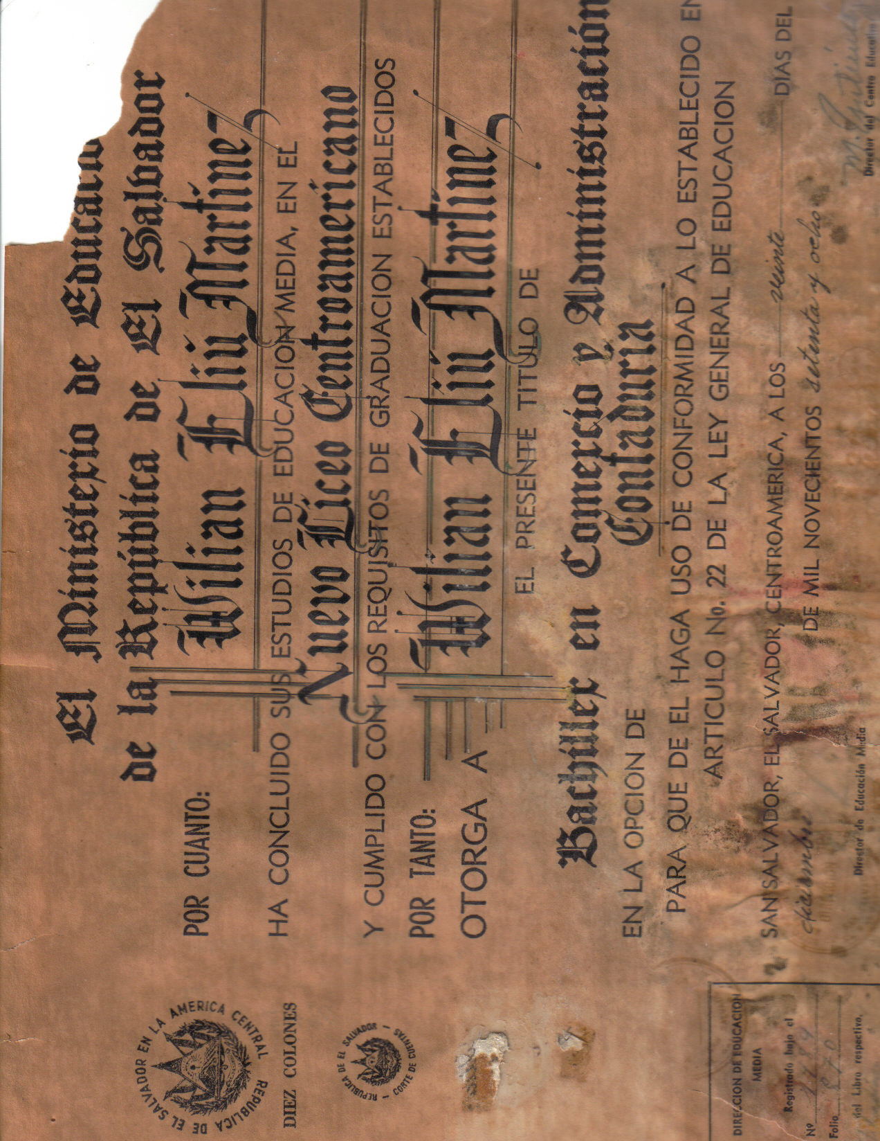 Unfortunately, El Salvador was hit by the tropical storm Alison, so some of the certificates were damaged by water.